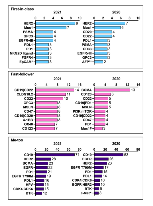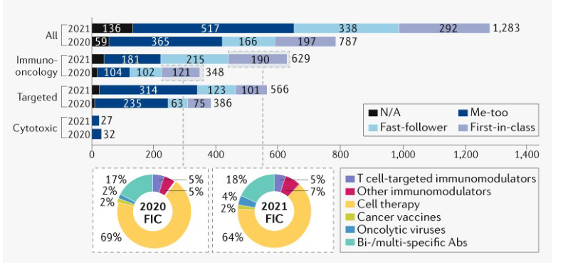 图6. first-in-class抗癌药靶标概况 (2021年vs 2020年)